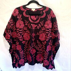 LAYERZ CLOTHING Floral Embroidered Relaxed Fit Poncho in Black Maroon SZ M