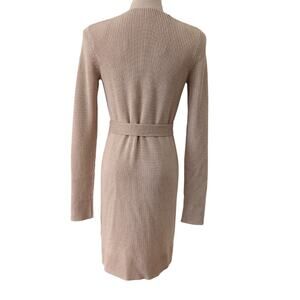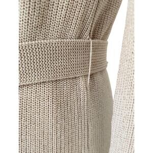 Effortlessly chic and ultra-wearable, she's our bestselling rib-knit cardigan, and now offered in a versatile neutral with a hint of lurex. Our double-breasted Noe tapers from strong shoulder to waist before falling to mid-thigh, for a flattering, defined silhouette. Tie belt enhances hourglass definition. Finished with our signature embossed-dome accent buttons. Pair with denim for a pulled-together weekend look.