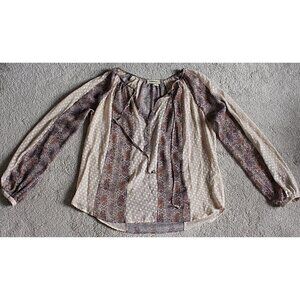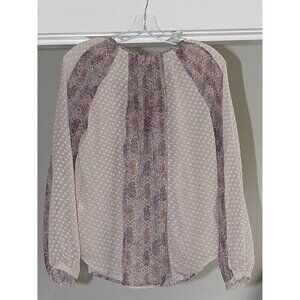 This is a Beautiful Silk Chiffon Peasant Blouse done in a Paisley Pattern + Dots alternating panels.