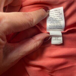 LC Lauren Conrad drapey, chiffon-style, short flutter sleeved blouse/shirt/top. Women's size Large. 100% polyester. Coral floral and bird Hawaiian-print. Lined in matching coral fabric. Machine wash and tumble dry. Excellent used condition.