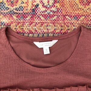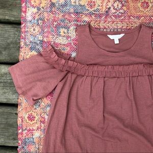 LC Lauren Conrad open shoulder dress / ruffles around the front / lined / size small / great condition
