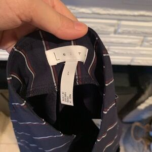 LEITH Navy Striped High Waist Stretch Wide Leg Cropped Pants Size Large. Add your own belt, I don’t have the matching fabric one.
