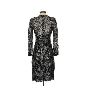 LELA ROSE Black Silver Dusted Long Sleeve Lace Dress Size 4 Silk Lined