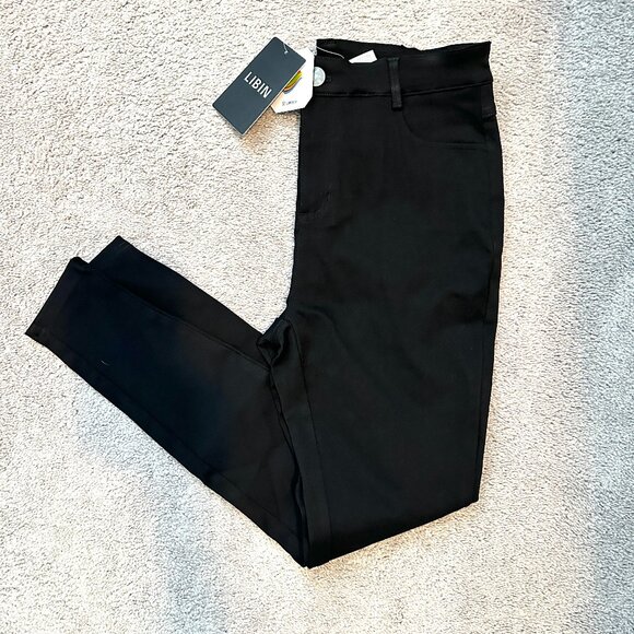 LIBIN Women's Stretch Work Pants Skinny-Leg Slacks Slim Fit Golf UPF 50+ Black