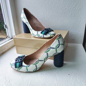 LIKE NEW VINTAGE AUTHENTIC TORY BURCH NAUTICAL CLASSIC LEATHER HEELS SHOES