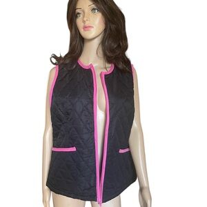 LILLY PULITZER Quilted VEST Embriodered PALM TREES Black Pink Size M