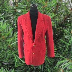 LIZ CLAIBORNE🎄VINTAGE 80s Red Long Blazer multicolor flecks and Shoulder Pads 10