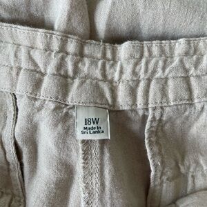 L.L. Bean Classic Fit 100% linen beige elastic tie waist pants | 18