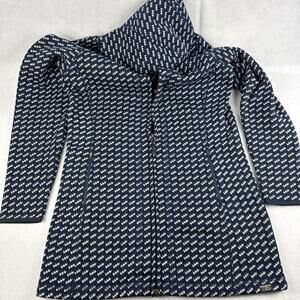 LL Bean Jacket Womens Medium Blue Birdseye Sweater Fleece Coat Full Zip Hood