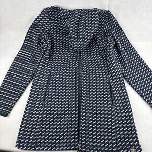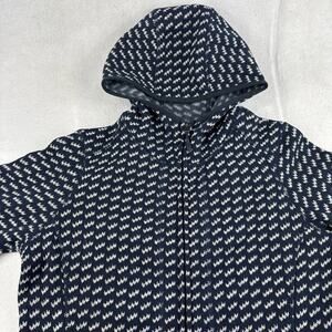 The LL Bean Jacket Womens Medium Blue Birdseye Sweater Fleece Coat is a classic mid-length parka style jacket designed for outdoor activities during the winter, fall, or spring seasons. Made from polyester fleece, this geometric blue sweater features a full zip closure, long sleeves, and a hood for added warmth and protection. With a regular fit and size M, this jacket is perfect for casual or workwear occasions, offering both style and functionality for the modern woman. The LL Bean brand ensures quality and durability in this timeless piece that can be easily machine washed for convenience. (0029)