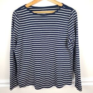 L.L. Bean Navy and White Striped Shirt. Women's XL. H106