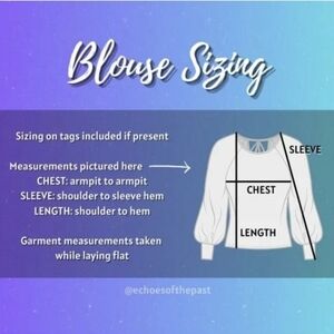 Chest measurement is taken armpit to armpit. Sleeve measurement is taken shoulder to sleeve hem. Length measurement is taken shoulder to bottom hem.