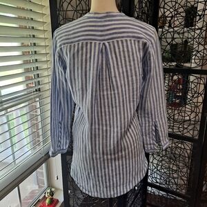 LL Bean Size XS 100% Linen blue and white striped tunic