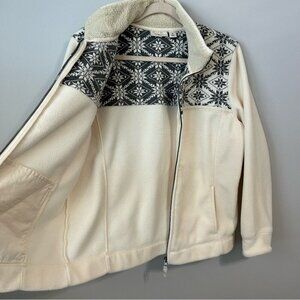 L.L. Bean Women's Nordic Fair Isle Fleece Full Zip Cream Jacket Size Large