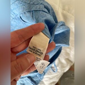 L.L. Bean chambray blue 100% linen pants elastic tie waist | 18