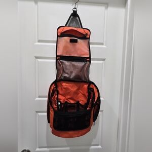 L.L.BEAN TRAVEL LOT 2 TOILETRY KITS BLACK POUCH CASE ORANGE HANGING BAG UNISEX