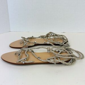 LOEFFLER RANDALL Bo Crystal Embellished Braided Ankle Tie Sandals Metallic Sz 8