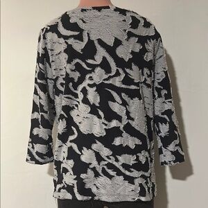 LOFT 3/4 Sleeve Black & White Floral Stitch Pattern Blouse Women's Large Top.
