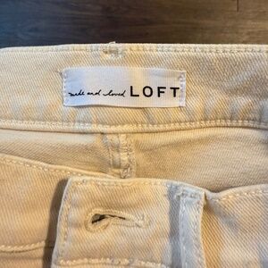 LOFT 98% Cotton Curvy Frayed High Rise Skinny Jeans in White