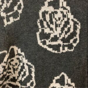 Deep gray with ivory off white roses. Ribbed neckline, cuffs and hem.