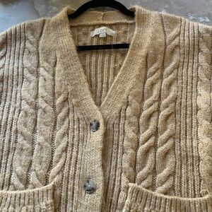 LOFT Cable Knit Boyfriend Relaxed Fit Cardigan Sweater in Camel Heather size XS