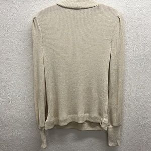 LOFT Cream Gold Knit Puff Sleeve Knit Top S