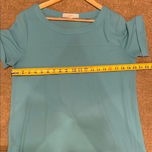 This relaxed and boxy blouse from LOFT features a vibrant blue color and short cuffed sleeves, perfect for a casual yet stylish look. The light and flowy fabric ensures comfort, while the cuffed sleeves add a touch of sophistication. Ideal for a laid-back day out or a casual gathering.
