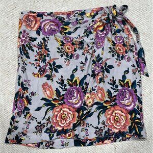 LOFT Skirt Size 10 Floral Faux Wrap Grey Purple NEW NWT