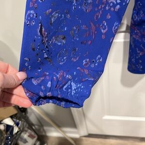 LOGO Lori Goldstein purple floral long sleeve peblum tunic top XL