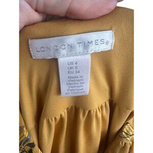 LONDON TIMES Yellow Marigold Floral Midi Dress Size 4