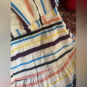 LOST + WANDER Mini Dress Cory Rainbow Cream Sz Medium Striped Lined Boho