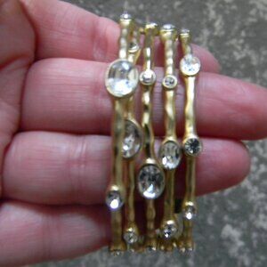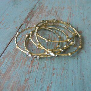LOT OF 5 FAUX GOLD HAMMERED BRACELETS W/FAUX DIAMONDS BANGLE