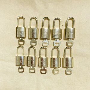 LOUIS VUITTON LV 10 SET PADLOCK KEY BAG CHARM CADENA GOLD PLATED