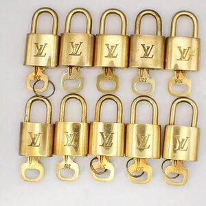 LOUIS VUITTON LV 10 Set Padlock Key Bag Charm Cadena Gold Plated France