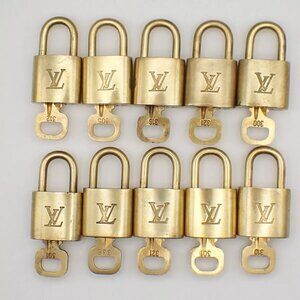 LOUIS VUITTON LV 10 Set Padlock Key Bag Charm Cadena Gold Plated France