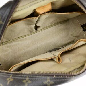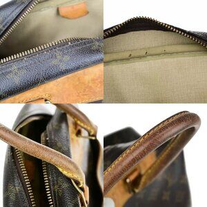 ( Zipper top has been repaired. Inside edge has been resewn. Handle, monogram leather and edge leather have cracks. Corner, edge leather, pocket edge leather and inside edge have been frayed. Please check a photograph and the text carefully. )