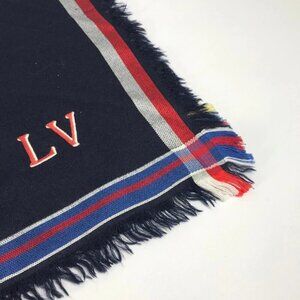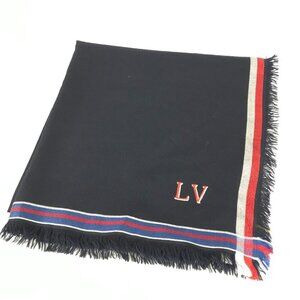 LOUIS VUITTON MP1702 LV logo Large fringe shawl scarf Stole/Shawl