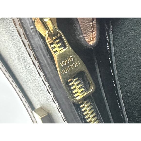 Featuring the super popular Reverse Monogram canvas with smooth toffee brown leather trim and shiny brass hardware with a cut-out LV press-lock closure.
