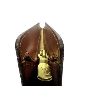 Product Description: This is an authentic LOUIS VUITTON Monogram Clutch Bag. This stylish clutch is crafted of Louis Vuitton's iconic monogram coated canvas. It features a secure zip closure, providing a chic and classic look. The clutch offers a spacious interior lined in durable leather, perfect for carrying your essentials. Its elegant design is suitable for both day and night use, making it a versatile addition to any collection. The date code indicates a production date of: January 1998 in France. No box, dust bag, auth cert.
