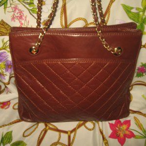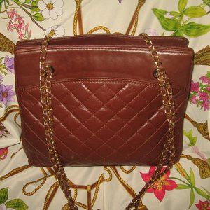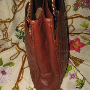 ❤️Authentic LOUISE FONTAINE CHOCOLATE BROWN QUILTED LEATHER 4 COMPARTMENT CHAIN BAG PURSE