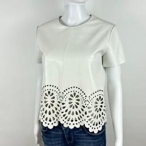 LOVER Sheep Skin Leather T-Shirt Top in White