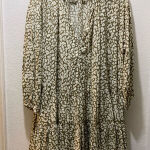 LOVE STORIES x H&M Tiered Beach Tunic Oversized Mini Dress Khaki Leopard Small