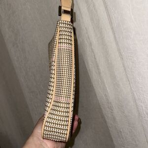 LRL Ivory Tan White Pink Gold Houndstooth Leather Silver Tone Hardware Hobo Bag