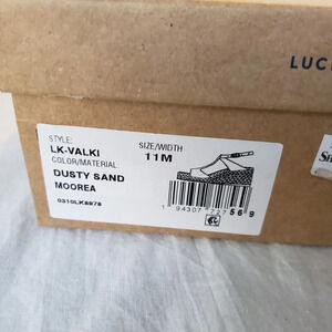 These women's size 10 Lucky Brand wedge sandals are new in the box and have never been worn. The stylish design, featuring a brand logo and wedge heel, makes these sandals a must-have for any fashion-forward woman. Don't miss out on the chance to add these beautiful sandals to your collection.