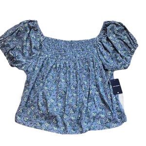 LUCKY BRAND NWT OFF THE SHOULDER TOP BLOUSE SHORT BALLOON SLEEVES FLORAL PRINT