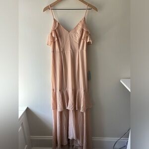 LULUS Cherish the Moment Blush Ruffled High-Low Maxi Dress Sz M