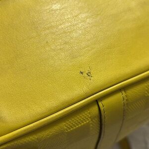 Older Louis Vuitton Tadao tote bag in a fun lime green color. This is a preloved bag, it does show some wear. There is some discoloration on the bag, and some light rubbing on the corners. The inside of this bag is super clean! No stains or funny smells and from a smoke free home. I do not have the crossbody strap for this bag, but I could include a generic chain upon request.