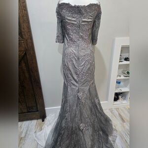 La Femme 24866 Off The Shoulder Embroidered Dress NWT size 12 Silver/Pink