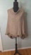 Chic tan poncho with playful pom-pom accents. Ideal for layering. NWOT