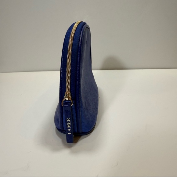 Sleek and stylish blue pouch by La Mer. Ideal for organizing essentials.